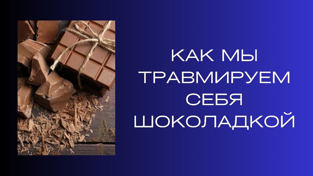 Допустим, что человек занимается спортом, бегает, а у него не получается посторойнеть, лишние килограммы не сбрасываются. И он расстраивается, переживает по этому поводу, критикует себя и съедает шоколадку. Съел – серотонин вырабатывается, и настроение вроде поменялось, стало лучше. Но сама проблема так осталась не решена. Человек сбежал от решения проблемы в заедание проблемы. Действие шоколада прошло, вес увеличился, и человек ещё больше не доволен, больше критики и, как следствие, ещё больше употребления сладкого и еды. Это такой неадекватный способ сбежать от своего развития и взятия ответственности за то, что человек создаёт в своей жизни. Вот так это происходит. А как это было создано? Например, в детстве вы ударились, или кто-то вас обидел, вы расстроились, а мама не хочет разбираться и ей некогда выслушать ваши чувства и эмоции или подсказать, что вам делать. Она говорит: «Успокойся, не плачь, на вот, возьми конфетку или шоколадку съешь!». И всё время вам сладкое подсовывают, ч