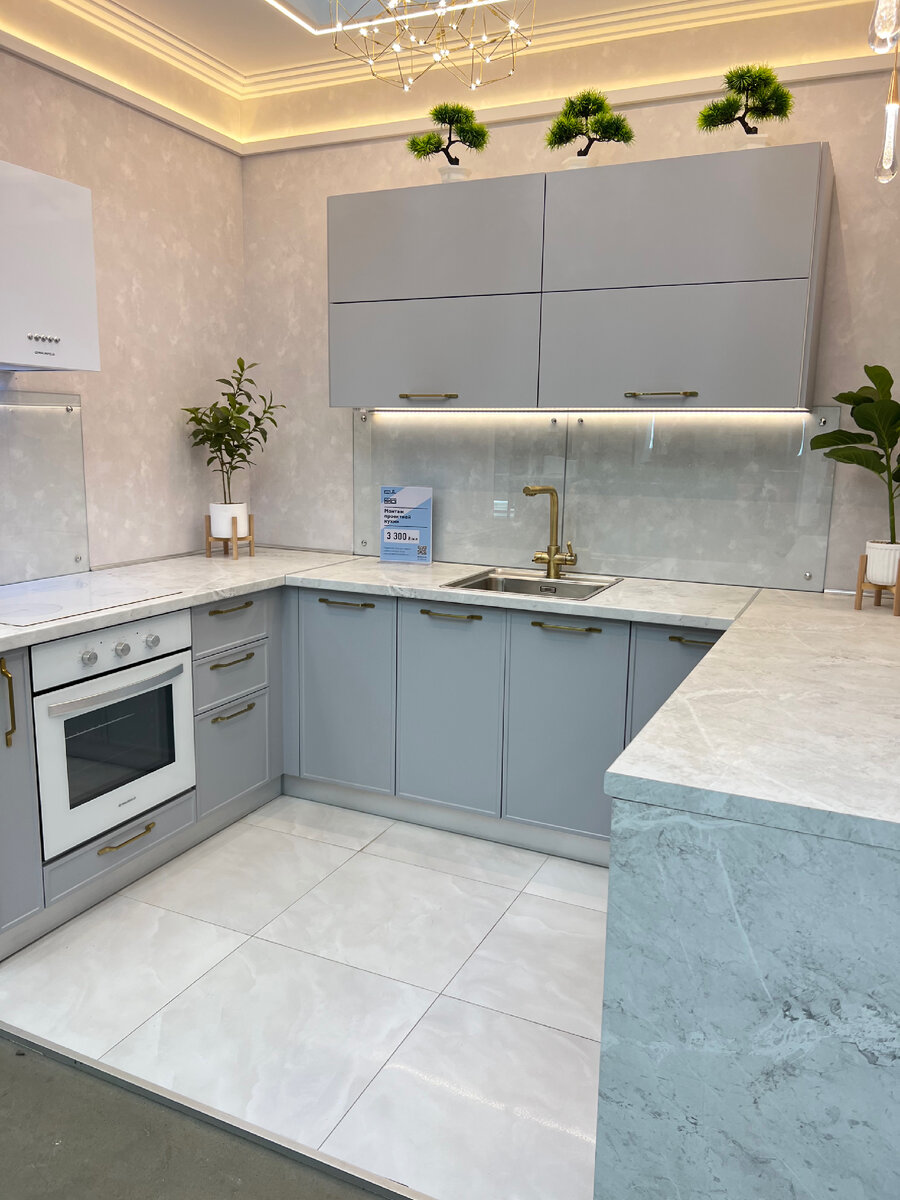 Всем привет! Мы продолжаем бороться и ждать, надеяться и верить! Это я про газ в нашей квартире. Я вам с этим газом уже порядком надоела. А как нам надоело! Вы бы только знали!🫢 Но мы немного, но продвигаемся. Скоро, в назначенный день поедем в Газпром оплачивать врезку в стояк (сказали это стоит около 10 тыс рублей). Пока не пустят газ, кухню мы не заказываем. Решили этим заняться, когда все трубы и шланги будут на месте. Мы уже давно ломаем голову, как разместить кухонную мебель. Но спланировать шкафчики стало возможно уже после установки котла и счетчика. И мы поехали в Леруа, где нам сказали, что ничего для нас подобрать не смогут. Тогда мы решили заехать в Бау Центр. Здесь прогулялись по выставке, сделала фото кухонь, которые мы уже не раз видели. Заметила, что многие из них в основном серые или бежевые. Здесь подробнее про трубы на нашей кухне 👇 И вот, гуляя по магазину, мы увидели вот этот👇 вариант расположения шкафчиков. Я заинтересовалась и решила записаться на проект кух