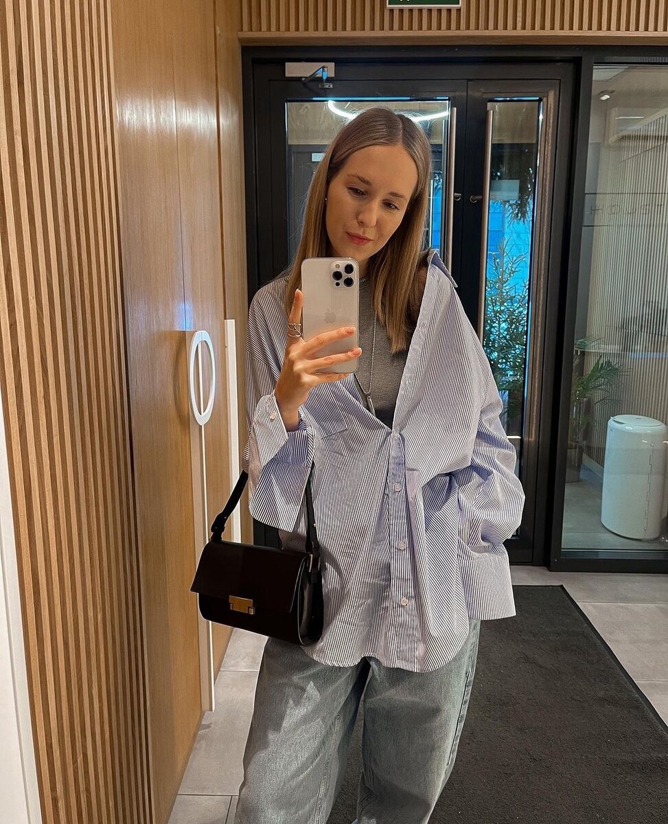 Перейдем от слов к делу. На этом фото образ для очаровательной Марии. Мне нравится минимализм в стиле, базовые цвета и фишки в обуви и аксессуарах.