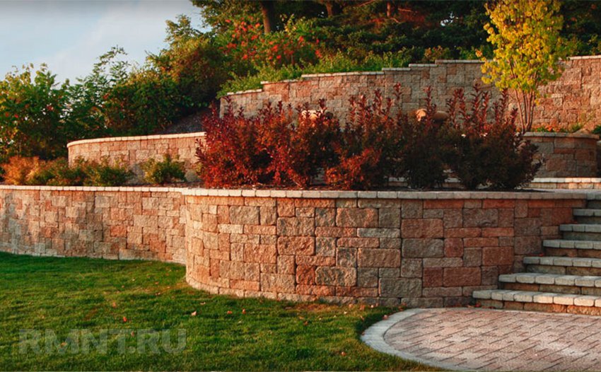 При большом уклоне приусадебного участка подпорная стенка решает вопрос его выравнивания, а также может стать прекрасным вариантом ландшафтного дизайна.