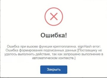 Ошибка при вызове функции криптоплагина signHash error, при регистрации декларации соответствия ТР ТС: