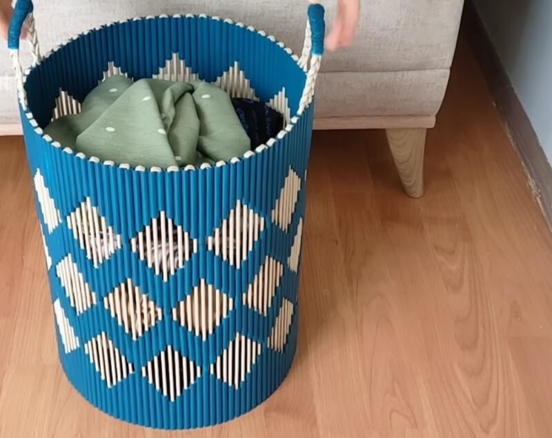 Вместительная корзина из бумажных трубочек, почти бесплатная вещь для дома