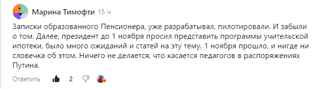 Поступил вопрос в комментариях про распоряжение президента рассмотреть вопрос про ипотеку учителям до 1 ноября предыдущего года. Что нового по этому вопросу? Есть ли подвижки? Что думают чиновники? Обсудим))