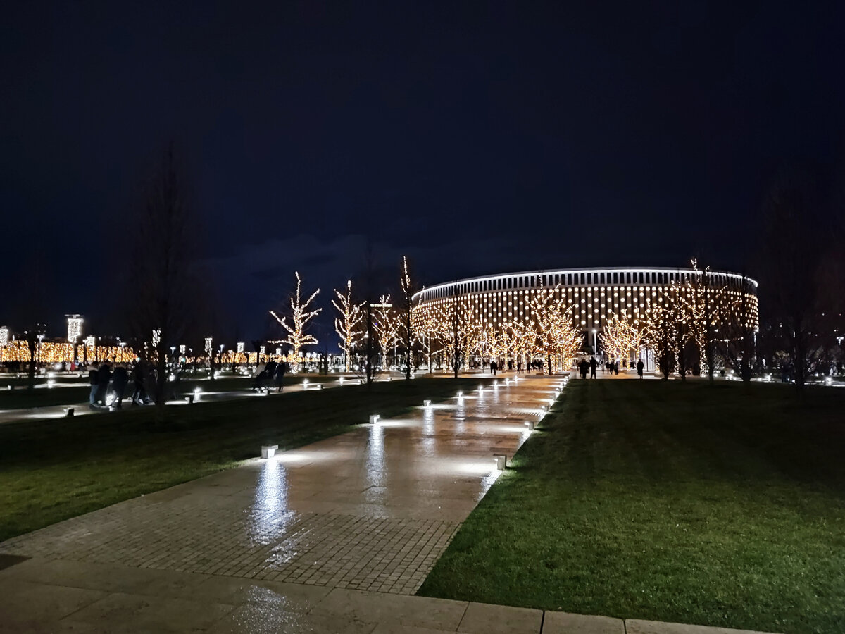 Ну что же, друзья, напомню, что в начале января мы съездили в Краснодар и одной из целей посещения являлся парк Краснодар, или парк Галицкого, как его негласно называют в честь мецената, создавшего это удивительное пространство в подарок городу. Центральный объект парка — это стадион футбольной команды «Краснодар». Мы специально поехали сюда ночью, потому что во-первых, днём зимой парк выглядит не так интересно, во-вторых, это новогодние праздники и к общей подсветке добавилась праздничная, ну и в-третьих, чтобы посмотреть новый арт-объект в парке, который только недавно открылся. Но об этом позже. Скажу так: парк просто изобилует всевозможными арт-объектами. Мы здесь впервые и за один поход сюда прошли чуть больше половины, но ещё много всего не охвачено, тем более, гуляли с ребёнком. Посмотрите, какие очаровательные ангелочки ) Один из самых притягательных объектов — Японский сад тоже остался в посещение на будущий приезд в тёплое время года. Но я покажу вам последнее чудо парка — э