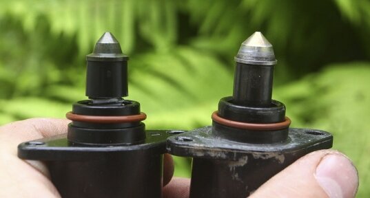Регулятор холостого хода – это простой шаговый электродвигатель с подпружиненной конусной иглой. На холостых оборотах в мотор поступает воздух благодаря смене пропускной способности канала, по которому он поступает. Проблемы в работе механизма можно выявить при ДИАГНОСТИКИ АВТОМОБИЛЯ В СТО или по признакам, речь о которых пойдет дальше. Объем поступающего через заслонку воздуха контролирует датчик его расхода. Контроллер организует поступление бензина через форсунки в двигатель. Датчик положения коленного вала сообщает контроллеру величину оборотов мотора. На основе перечисленных данных идет управление регулятором холостого хода для увеличения или уменьшения подаваемого воздуха. Если мотор прогрет, контроллер держит обороты холостого хода. В некоторых случаях контроллер на непрогретом двигателе увеличивает обороты, что ведет к росту оборотов коленвала. В результате появляется возможность моментальной езды на авто без прогрева мотора. Регулятор холостого хода крепится на заслонку двумя