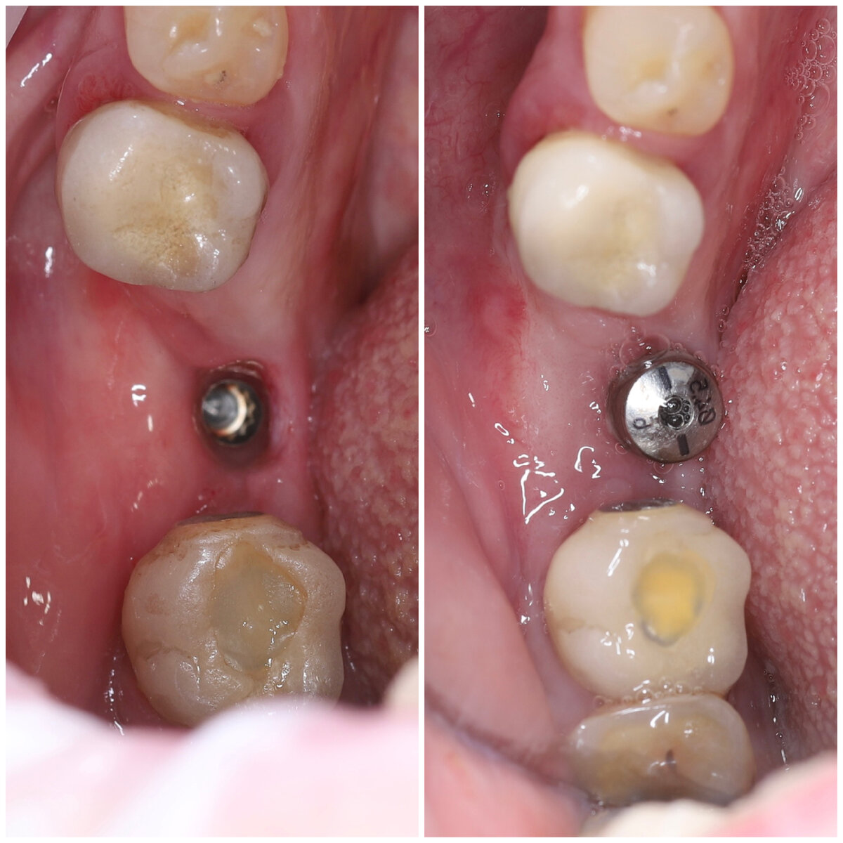 Добрый день, дорогие друзья! В этой статье поделюсь клиническим случаем компромиссного решения проблемы. Потому что пациента до меня итак замучали вмешательствами и было обоюдное желание обойтись малой, но необходимой кровью. Переделки всегда делаются и даются сложнее всем участникам процесса. Идеально было бы конечно сделать сразу всё нормально. Но в силу разных причин (отсутствие планирования, отсутствие знаний/опыта/непосещение обучений и конференций по стоматологии, отсутствие необходимого инструментария, невыполнение рекомендаций/самолечение и т.п.) происходит то, что происходит. Конечно это не катастрофа. Но однозначно неприятное событие. Пациент попал ко мне, пройдя 2 имплантологических лечения в разных клиниках. 😐 Когда - то давно был установлен имплантат и установили спаянные коронки. Потом начала забиваться пища под коронку на 6 имплантате снизу и это вызывало чувство дискомфорта и неприятные ощущения. Потом десна стала красного цвета, отёчна и набухла. Пациент попа