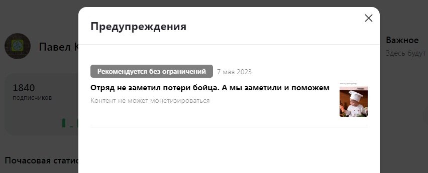 Давненько не прилетали мне ограничения)) Пишу мало в последнее время, ролики и видео только собственные, всё скромно при этом. Поэтому увидев с утра ограничение удивился Заглянул по ссылке. Статья небольшая, из серии помощи дружеским каналам. Ничего особенного. Ниже ссылку дам, посмотрите, если найдутся десяток секунд свободного времени) Если пересказать совсем кратко, один из дружеских каналов попал в бан, без возможности восстановления, автор создал новый канал и я об этом рассказал. Дело было 7 мая 2023 года. Конечно сейчас статья не актуальна, особо, не показывается в ленте, но почему-то её перепроверить решили и ограничить)) Конечно в ТП написал. Да, удалить статью несложно, но хотелось узнать, что не так, может какие новые правила нарушены. К сожалению ограничение было банальной ошибкой Предупреждение сняли, показы каналу из околонулевых подниматься начали. Жизнь налаживается)) Статья вот, посмотрите, может найдёте за что мог алгоритм зацепиться, пусть и ошибочно. Удачи вам и д