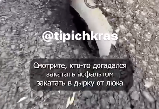 В Краснодаре к 6 марта блогеры сняли обзор дороги после ремонта с пометкой – «адскй треш». С проблемами поселка Российский в Краснодаре знаком даже глава следственного комитета России Александр Бастрыкин. Местные жители называют район краснодарским гетто и регулярно жалуются правоохранителям на лишение их возможности жить в комфортных условиях. Происходящим в поселке заинтересовались и любители социальных сетей. - Смотрите, кто-то догадался асфальтом закатать дырку от люка без крышки и она уже начинает проваливаться, - в негодовании рассказывает блогер. Фото: скриншот видео тг-канала "Типичный Краснодар" - Мы находимся а поселке Российский. Тут строительство новой дороги идет, - подхватывает его пояснение видеомейкер. - Ну, ты теперь понимаешь, почему про поселок принято говорить плохо. Также блогеров удивил столб посреди дороги. - Как тебе эта инсталляция? Интересно. Я художник, я так вижу. Столб прямо на дорогу выходит, - подшучивают активисты. Фото: скриншот видео тг-канала "Типичны