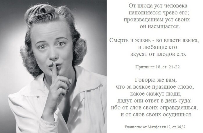 1 Не судите, да не судимы будете, 2 ибо каким судом судите, таким будете судимы; и какой мерой мерите, такой и вам будут мерить. 3 И что ты смотришь на щепку в глазу брата твоего, а бревна в твоем глазу не чувствуешь? 4 Или как скажешь брату твоему: „Дай, я выну щепку из глаза твоего“, а вот, в твоем глазу бревно? 5 Лицемер! Вынь прежде бревно из твоего глаза и тогда увидишь, как вынуть щепку из глаза брата твоего. 6 Не давайте святыни псам и не бросайте жемчуга вашего перед свиньями, чтобы они не попрали его ногами своими и, обернувшись, не растерзали вас. Матфея 7:1-6 Слова Божьего никто не отменял. Клеветники пройдут, сплетники пройдут. А Слово Божие вечно. Поэтому целесообразно основывать свою жизнь на Слове Божьем. И язык — огонь, прикраса неправды; язык в таком положении находится между членами нашими, что оскверняет всё тело и воспаляет круг жизни, будучи сам воспаляем от геенны.