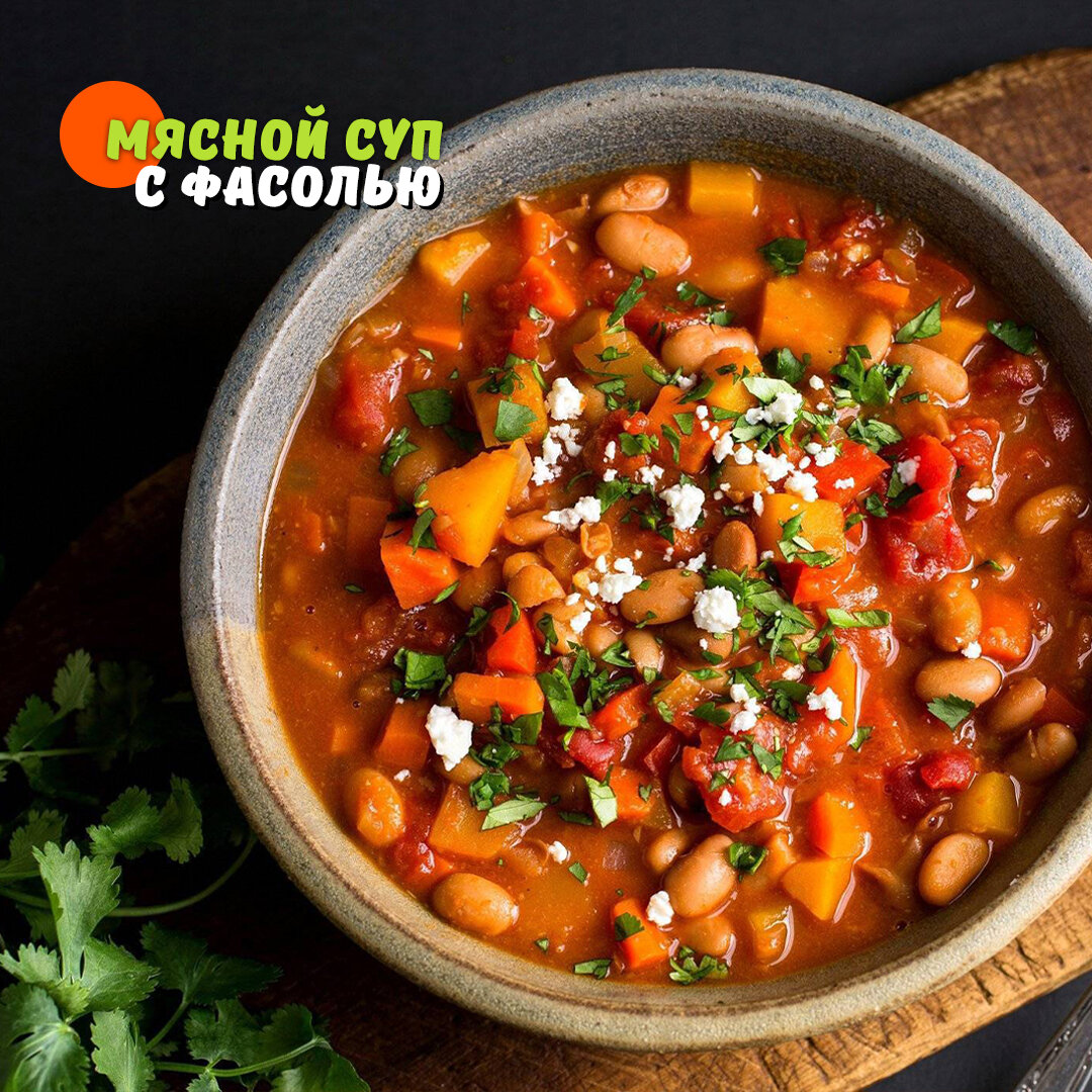 🔸 свежая зелень – пучок 👩🍳 Пошаговый рецепт 1️⃣ Шаг Предварительно замочите фасоль в холодной воде на 10-12 часов. Если используете консервированную, тогда этот шаг можно пропустить. 2️⃣ Шаг Залейте мясо водой и поставьте на средний огонь. Как только бульон закипит – снимите пену и добавьте щепотку соли, пару горошин черного перца и лавровый лист. Уменьшите огонь до минимального, накройте кастрюлю крышкой и варите еще 90 минут. 3️⃣ Шаг По истечении времени достаньте мясо и нарежьте на небольшие кусочки, бульон процедите. Промытую фасоль поместите в отдел