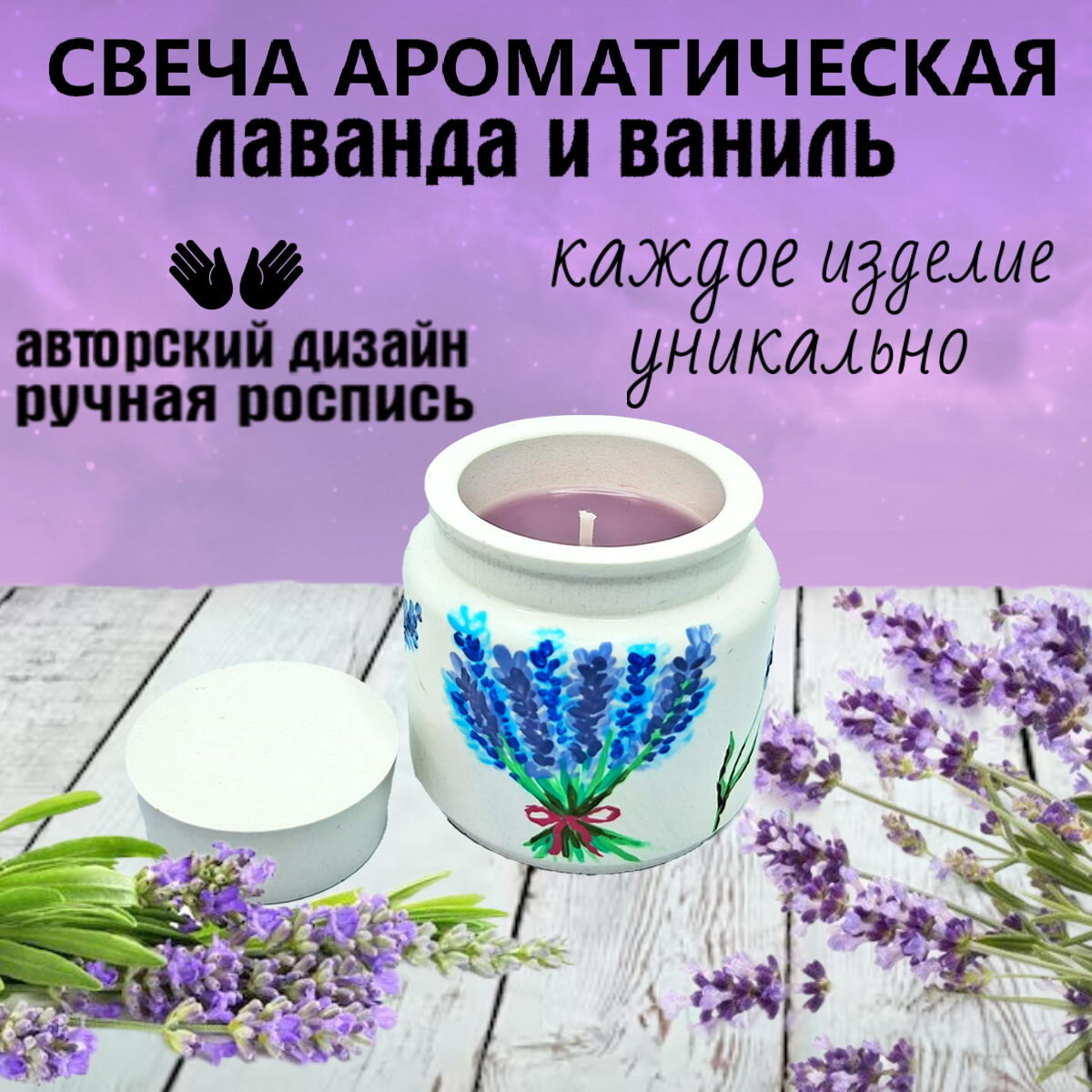 Ароматическая свеча с ручной росписью. Полностью уникальное изделие: вы получаете эксклюзивный товар с авторской росписью, которая не повторится в точности ни на одном другом изделии. Вы получите ароматическую свечу в подарочной упаковке и с открыткой с нашим дизайном. Купить свечу можно на Озон: