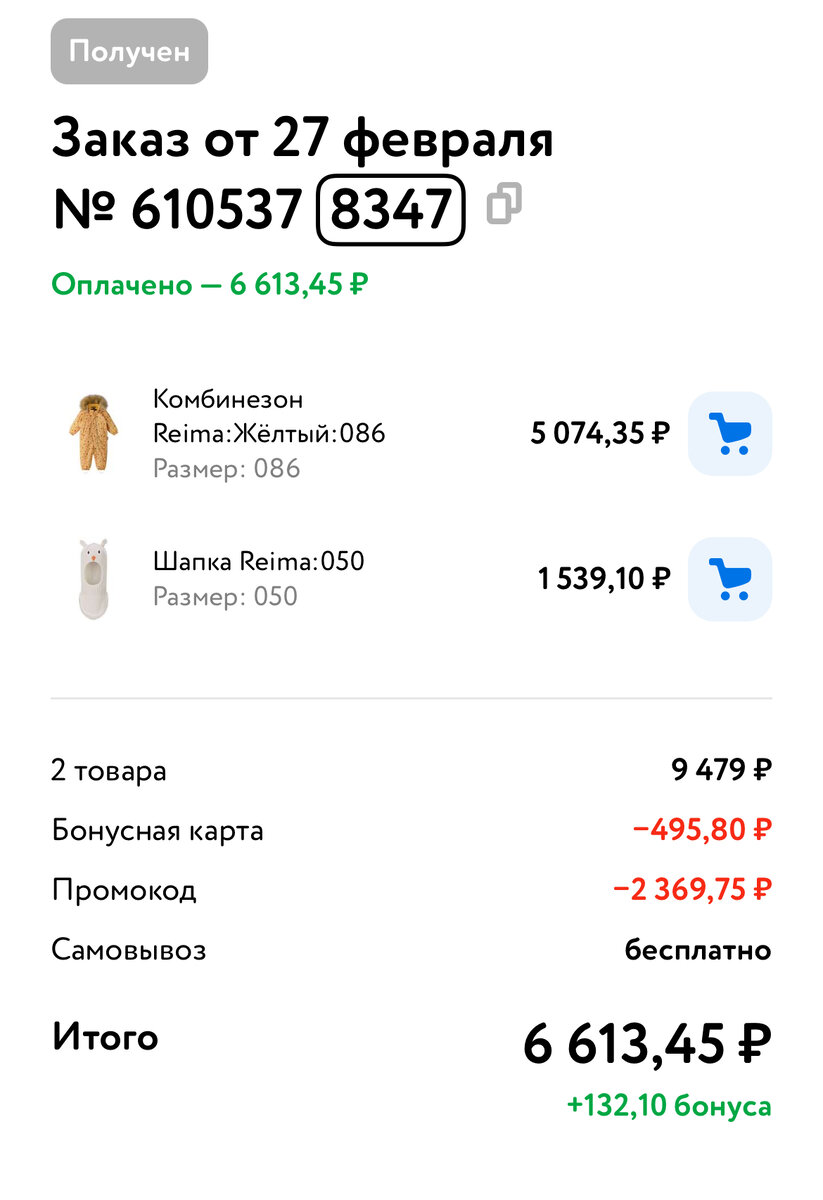 Здравствуйте! Сегодня хочется рассказать о последних покупках. Начнем. На День Рождения дочке друзья подарили подарочный сертификат в ДМ номиналом 5000₽ и я решила приобрести комбинезон reima на сл. зиму 😳 цены на зиму были с небольшими скидками + доп. скидка по промокоду и в итоге получалась чуть больше 5тыс. , к комбинезону я еще присмотрела шапку -шлем и доплатить мне оставалось всего 1613.45₽ Сегодня заказ забрала, вроде качество не плохое, но на 4. Много лет назад, я мальчишкам своим покупала этот бренд, качество было лучше, носилось хорошо и после 2 детей (у меня погодки) я умудрялась продать все почти за полную стоимость покупки))) Потом я забрала заказ с wb, отказалась только от одной позиции, остальное все отлично ❗️ Вот такие покупки 🌿 решила я навести порядок в ванной и разобрать свою шкатулку) поэтому купила органайзеры для хранения. Сегодня буду собирать чемодан в отпуск (едем в санаторий) и наводить порядок в шкафу с косметикой и с украшениями 🌿Весна, хочу чтобы был