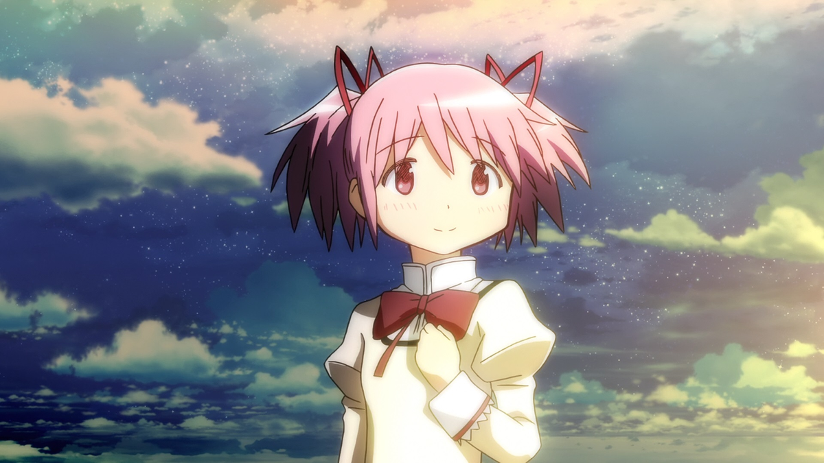 Что ж, начнем с главной героини. Многим Мадока до сих пор кажется раздражающим нытиком, что, действительно, неотъемлемая часть ее характера, но не определяющая. Поступки Мадоки говорят гораздо больше, чем ее слезы и слова. Не будучи волшебницей, Мадока увязалась следом за своей подругой Хитоми, желая спасти ее и всех людей, подчиненных воле ведьмы; постоянно ходила вместе с Саякой, чтобы присматривать за ней; пыталась достучаться до Саяки-ведьмы, хоть Кёко вовсе не гарантировала ей безопасность; ну и желание загадала, разумеется. То самое желание, которое перевернуло мир, позволило Мадоке менять причинно-следственные связи и привело к "Rebellion".