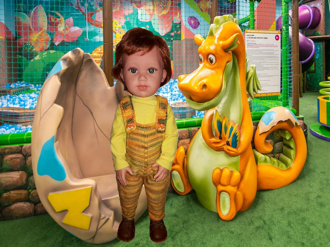 Доброго всем утра, дня или вечера. Видела в сети много фотографий замечательных куколок-булочек Миечек в полукомбинезонах. Им очень идёт, смотрятся такие штанишки на лямочках великолепно. Я уже пыталась связать что-то подобное. Вот тут описание меланжевого полукомбинезона. Попробую связать такие штанишки Антошке от Лоренс. Этот осенний меланж я пробовала вязать изнаночной гладью. Фрагменты у него длинные и получилось довольно мило. Вот тут описание платьица "Листопад". Ничинаю вязать сверху. Набираю 25 петель. 12 изн, 1 лиц, 12 изн. В Изнаночном ряду 12 лиц, 1 изн, 12 лиц. Вяжу 6 рядов без прибавок. Прибавки начинаю делать с 7 ряда у центральной линии в каждом 4 ряду. Вяжу 30 рядов. Получаю 37 петель на спицах. В 31 ряду прибавляю 30 петель с одной стороны, и в 32 ряду 30 петель с другой стороны вязания. Вяжу 35 рядов, продолжая прибавки по центральной линии. Получаю 121 петлю на спицах. Разделяю вязание на 2 части. Получается по 60 петель на одну штанину. Вяжу 60 рядов, провязывая вме