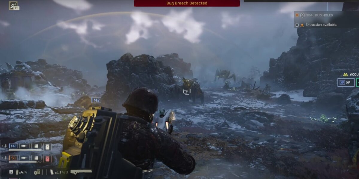 Опробовав нашумевшую новинку я проникся атмосферой, поняв, что эта игра опередила иммерсивность прочих. Атмосфера В helldivers 2 игрок берëт на себя роль патриотичного вояки, который готов умереть за идею, распространëнную в игре. Если попытаться вникнуть в атмосферу игры, то больших стараний не потребуется, ведь игра даëт большой обьëм окружения. Спускаясь в челноках на очередную миссию с уже полюбившимися соотрядовцами ты прибываешь оказываешься в ночной заросшей зеленью местности, темно, ничего не разглядеть, вы включаете фонарики дабы увидеть хоть что-то, но тут как на зло начинается проливной дождь. Ориентироваться становится всё сложнее, и это лишь начало миссии. Вы с отрядом передвигаетесь в точку основного задания, встречая по пути различные локации, к примеру, артеллирийскую установку. Вы слышите, как жуки уже мчатся в вашу сторону, но среди такой темноты не то что целиться- осматриваться довольно сложно. С горем пополам вы укрепляетесь на позиции спиной к спине и начинаете