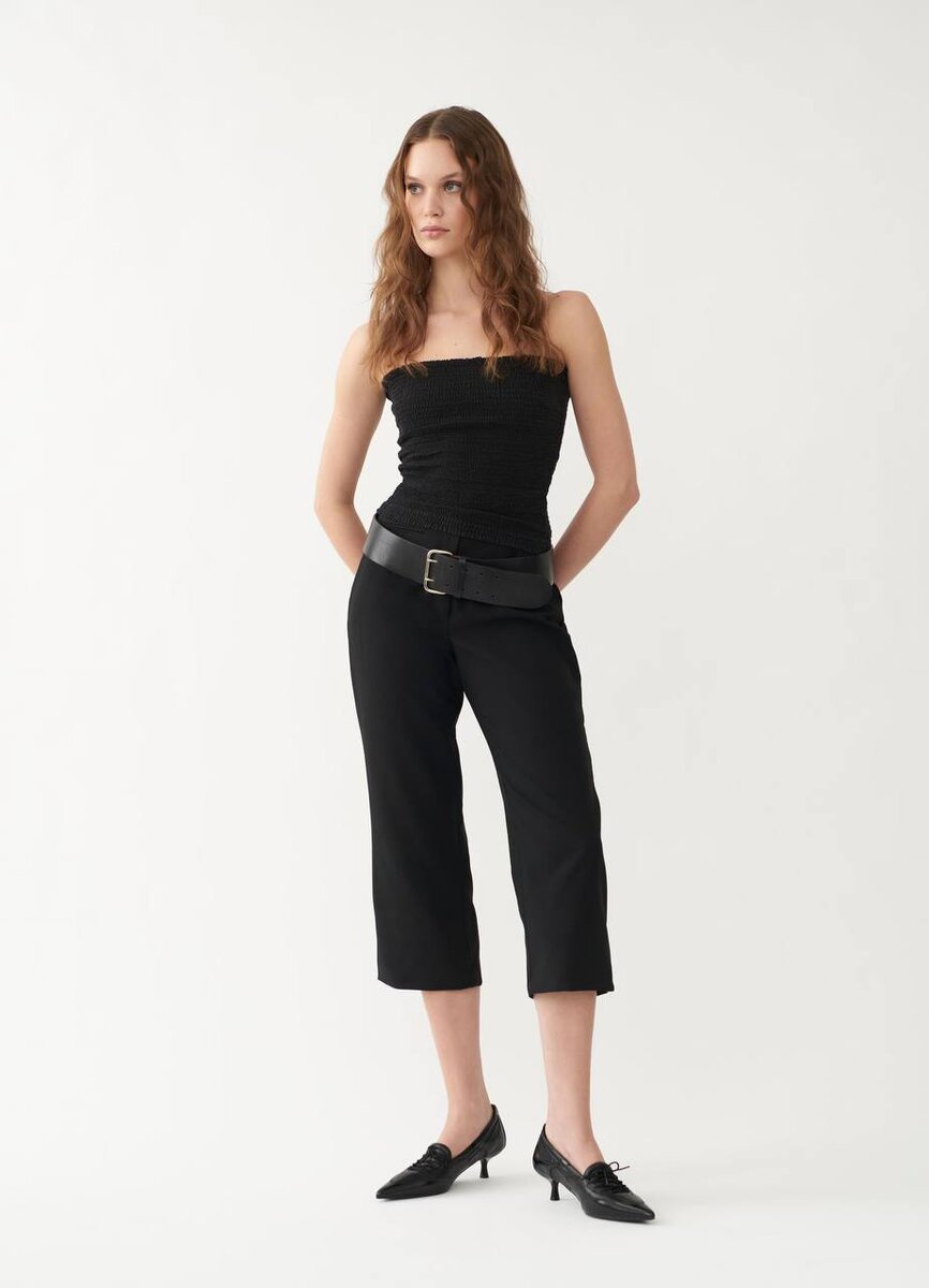 Так. Ну в принципе самую стремную стилизацию этого сезона я уже нашла😂 Полезла посмотреть не обновился ли раздел coming soon в вагабонде – а тут такое чудо. Здрасьте. Короче, вне зависимости от того, запланирован ли у вас в шопинг листе этот еб***ски трендовый элемент гардероба — оставлю вам здесь послание в виде трех своих «нет»: ❌ нет укороченным брюкам, которые заканчиваются ровно на середине икры (самая пропорционально недружелюбная длина, которая стилистически очень плохо вяжется в комплекты и физиологически странно смотрится на ноге) ❌ нет концентрированному сочетанию капри с другими «странными» вещами их эпохи: практика полностью возвращать такие акцентные луки — самая неблагодарная. Гипотетически я бы взяла капри с высокой посадкой и носила их с объемным удлиненным свободным или приталенным жакетом. Но точно не с лоферами на каблуке и широким ремнем на бедрах ❌ и нестрогое нет сочетанию темные капри + светлая голая нога + темная обувь (тут просто надо учитывать телосложение).