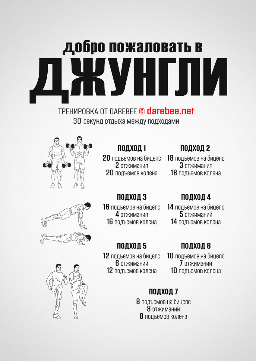 Новый релиз — Добро пожаловать в джунгли. Это тренировка для всего тела от Darebee, которая помогает увеличить силу и выносливость. https://darebee.net/jungle-workout.html ЦЕЛЬ: все тело ТИП: сила СЛОЖНОСТЬ: 3 — подходит для начинающих