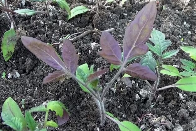 Рассада томата, выращиваемая с середины февраля, начала приобретать сине-фиолетовый цвет. Как и чем ее подкармливать?