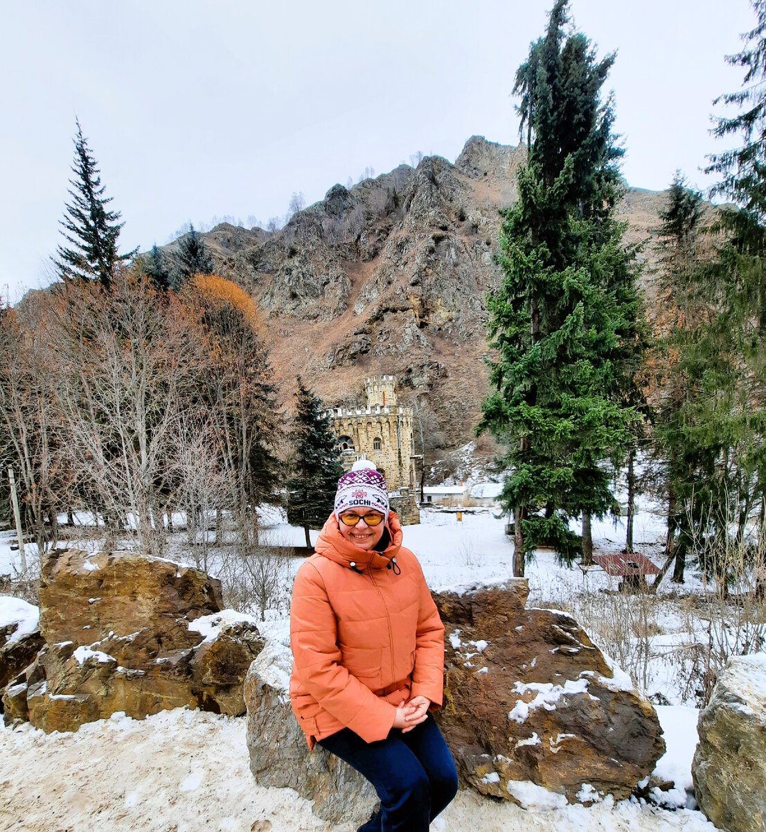 Продолжаю повествование о нашей поездке в экопарк "Долина Нарзанов" 5 января 2023 года. Начало здесь: Испив живительной влаги, то бишь нарзана, мы вернулись к зданию, которое заприметили на входе на территорию Долины нарзанов. Здание напоминает средневековый замок и кажется, что ему не один век. Как оказалось, замок далеко не старый, построен он был в 1936 году. На просторах интернета пишут, что это был охотничий домик для членов ЦК партии. Предполагалось также, что это будет гостиница для иностранных туристов, но с ними как-то не сложилось и замок стал дачей Калмыкова - первого секретаря Кабардино-Балкарской республики. Сюда он привозил своих влиятельных друзей. Здесь гостили Ворошилов, Берия... В последствии в замке открыли гостиницу, а рядом построили турбазу «Долина Нарзанов», пользующуюся популярностью у отдыхающих. Но в 90-е годы турбаза пришла в запустение. Замок был полностью разграблен – из него вынесли не только мебель, сантехнику, радиаторы отопления, но даже двери и л