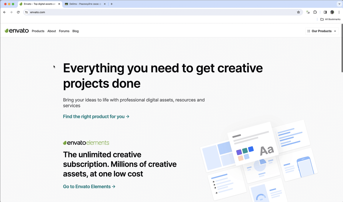 Конечно же, с помощью карты Делимс! https://delims.kz/ru/ 1. Воспользуйтесь ip любой страны, отличной от РФ. Мы рекомендуем использовать страну Казахстан, так как карты эмитируются банком-резидентом Казахстана. 2. Перейдите на сайт Envato, зарегистрируте новый аккаунт или авторизуйтесь под существующим 3. Найдите интересующий вас товар или подписку, добавьте в корзину и перейдите к ней. Мы в своем примере рассмотрим покупку фотографии 4. Если у вас только новый аккаунт, после перехода в корзину у вас запросит указать текущее местоположение - указываем Kazakhstan 5. На странице корзины переходим к оплате, нажав на зеленую кнопку Secure Checkout 6. В появившемся окне Billing Information указываем любой адрес Казахстана и нажимаем Save and Continue. Если не знаете, какой адрес указать, воспользуйтесь нашим юридическим - 050008, Kazakhstan, Almaty, Abaya ave 115: 7. В появившемся выборе метода оплаты выбираем единственно доступный - PayPal, кликаем на него и нажимаем на кнопку Pay Securel