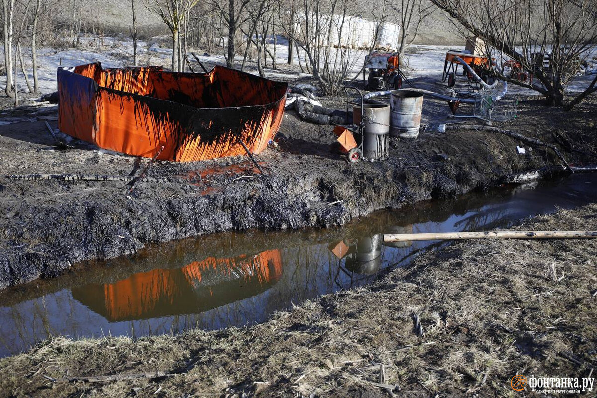 Вода в Муринском ручье до встречи с этой черной артерией № 1134 была в порядке, так что за источником грязи пошли по этому каналу. Так дотопали до дома № 11 в Мурино, постоянно видя следы нефтепродуктов. Нашли две трубы, откуда сбрасывалась сточная вода с характерным запахом, сами они были опять же в густой фракции. По данным «Фонтанки», в комитете считают, что решение предоставить их в пользование было принято еще 5 лет назад. Кому? ГУП «ТЭК», главному «отопителю» города, действовать решение будет до октября. Сброс сточной воды проводится с помощью водоотводной канавы.В принципе вокруг не так много предприятий, которые могли бы предоставить мазут в товарном количестве. А на участке к тому же — котельная в эксплуатации все того же «ТЭК». Но дальше полномочия комитета заканчиваются, потому что за этим объектом надзор федеральный. И эта формулировка совпадает с релизом Росприроднадзора.В ГУП «ТЭК» «Фонтанке» уверенно заявили, что не имеют отношения к сбросу мазута.При этом причастные к проверке ведомства с интересом читают справку, которую им прислали в ответ на их вопросы, ее подлинность подтвердили несколько источников. Согласно ей, 26 февраля во время осмотра той самой котельной «Северомуринская» «сменным мастером обнаружено вытекание мазута на поверхность проезжей части между обваловкой мазутных резервуаров и зданием мазутонасосной станции, с попаданием топлива в сточный колодец системы отвода ливневых вод, что привело к загрязнению водного объекта «Муринский ручей»». Задвижки мазутопровода перекрыли, а на место вызвали подрядчика — АО «ЦАСЭО», чтобы он локализовал загрязнение, выставив боны (вспоминаем отчет инспекторов о том, что, когда они прибыли на место, кто-то уже прибирался). Причиной сочли разрушение прокладки фланцевого узла нагнетающего трубопровода в мазутоперекачивающем насосе. Но впечатляет всех читателей не это, а названный объем вытекшего топлива — 0,3 кубического метра. Если через 10 дней расчистка двух ручьев от 0,3 куба мазута не завершена и выглядит так, как она выглядит, что-то в этом процессе капитально не так.