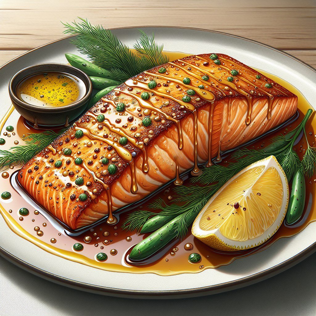 Описание: Лосось с медово-горчичной глазурью - это не только вкусно, но и очень полезно. Омега-3 жирные кислоты, содержащиеся в лососе, имеют множество положительных эффектов для здоровья сердца и сосудов.