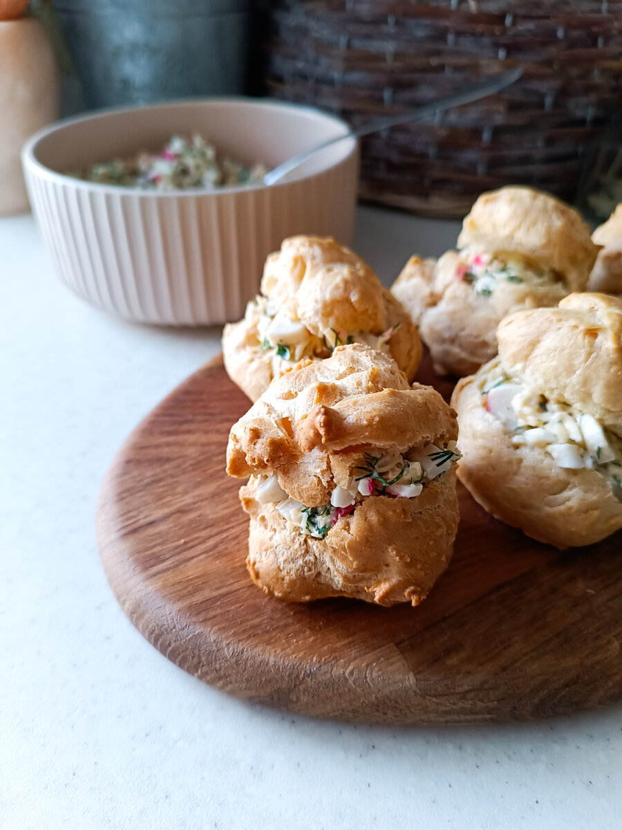 Вот-вот наступит Новый год Международный женский день и как не порадовать себя любимых вкусными блюдами? Предлагаю праздничную закуску из профитролей с солёной начинкой. 1. Сыр натереть на тёрке, крабовые палочки мелко нарезать, зелень измельчить. 2. Все смешать в одной ёмкости , добавить майонез и пропущенный через чеснокодавку маленький зубчик чеснока, перемешать. Начинка готова! Кстати такая смесь вполне сойдёт за самостоятельное блюдо в качестве салата. 3. Берём приготовленные заранее и остывшие профитроли, разламываем их пополам и начиняем каждую сырно-крабовой смесью. Такая незамысловатая закуска, лёгкая в приготовлении обязательно произведет впечатление на гостей и порадует приятным вкусом. Всех моих прелестных читательниц поздравляю с 8 марта! Быть женщиной - самое лучшее, что могло с нами случиться 💓 Берегите себя, балуйте, любите, наслаждайтесь каждым днём своей жизни 🫶