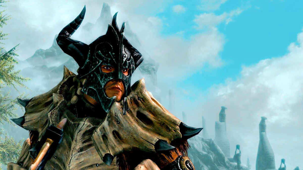 Броня и оружие Скайрима. …Насколько «лёгкий» сет драконьей чешуйчатой брони красив и изящен, настолько же панцирный тяжёлый доспех страшен и груб. Ну конечно же, это не чешуйчатая кожа, тут никакой кройки и шитья – какую кость дракон отрастил – такую из его скелета выдрали и приладили, не взирая, эстетично она смотрится или нет… Комплект тяжёлых доспехов полный, включая щит и появившиеся в «юбилейке» перчатки Забияки. Довакин в этой броне выглядит настоящим громилой, куда там Костяной Рубашке из «Игры Престолов»… Шлем почему-то мне не нравится своей формой; помнится, в «легендарке» я ставил мод на доспехи, и там был драконье-эбонитовый кольчужный капюшон – и вот он смотрелся с этим комплектом куда как лучше, особенно когда поверх него ещё и Зубчатую Корону оденешь))) Оружие из драконьей кости предоставлено тоже в полном комплекте. «Юбилейка» добавила сюда драконий арбалет с болтами и ещё один комплект стрел для лука. Они на одну единицу мощней «лорных» стрел, но вот с колчаном прям б