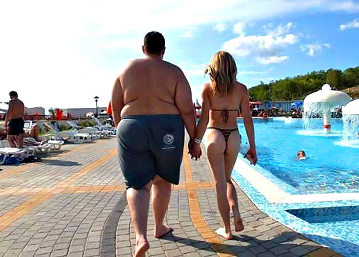 5) Рядом с толстяком женщина выглядит стройной. По этой причине, в основу преимущества ложится женское психическое спокойствие за своё собственное тело. Ей не хочется переживать, что она теряет свою привлекательность с годами. Можно не беспокоиться за ежедневные тренировки и жёсткие диеты - можно жить в удовольствие, не отказывая себе ни в чём, зная, что рядом находится человек, который сам с большим лишним весом и не волнуется по этому поводу вообще.