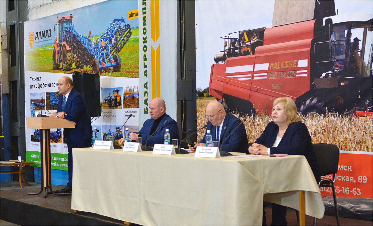 На совещании были представлены новинки техники от партнеров АО «База Агрокомплект» – холдинга «Гомсельмаш» и объединения алтайских машиностроительных заводов «Алмаз».
