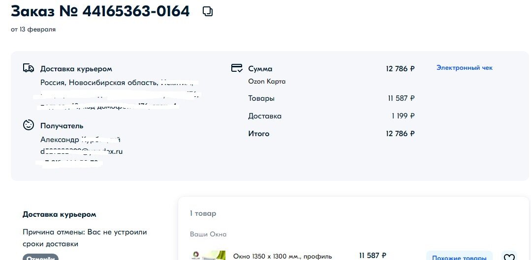Добрый день! История о том, как можно потерять и время, и деньги, оформив покупку на маркетплейсе Ozon. Данной торговой площадкой я пользуюсь довольно давно, совершил множество покупок и приобрел кучу полезных, и не очень, вещей. Но, как гласит пословица: и на старуху бывает проруха. И, как всегда, народная мудрость оказалась права. Суть истории. С недавних пор, на просторах этого магазина, можно купить практически всё, в том числе и окна ПВХ в квартиру. Что я, собственно и сделал, оформив 13 февраля заказ на окно с курьерской доставкой по адресу. Доставка должна была быть осуществлена 26 февраля. Но 23 февраля приходит сообщение от службы поддержки Ну, думаю, ладно. Люди работают, мало ли какие трудности и проблемы. Тем более, не пачку шурупов везут, а целое окно. Жду 4 марта, и не волнуюсь. Так как курьера, по правилам, мне необходимо было ждать с 10 утра до 10 вечера, предупредил на работе, что не выйду. Но, ближе к 15 часам моего местного времени, приходит новое сообщение от слу