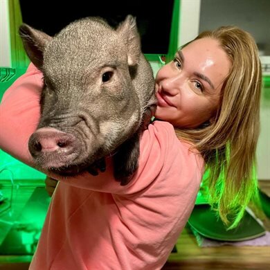Ульяновский тренер международного уровня Александра Волкова и ее 38-килограммовый питомец участвовали в программе «В кругу друзей» на канале «Россия-1». Напомним: четыре года назад Александра Волкова купила минипига. Сейчас свинка выросла и на улицах Ульяновска можно встретить красивую брюнетку и упитанную Хаврошу. Свинка гуляет трижды в день, имеет свой индивидуальный план питания, ведь её хозяйка – тренер по фитнесу. – В прошлом интервью для ulpravda.ru вы говорили, что стараетесь держать Хаврошу на диете. Удается ли? Судя по фото, мини-свинка заметно подросла. – Удается. Конечно, она подросла. Сейчас весит 38-килограмм. Но это норма, так как свинки растут до пяти лет. Сейчас мы также питаемся кашами, куриной грудкой, овощами, фруктами. Ходим на тренировки в зооцентр. Хавроша умеет делать трюки, играть на пианино и выполнять команду «ко мне!». Дрессирую её каждый день. «Но мне написали с канала «Россия-1», с передачи «В кругу друзей». Пригласили на шоу. Я стала узнавать: безопасно