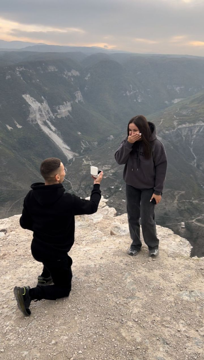 Впервые молодые встретились в одной компании, но пообщаться тогда не удалось. Спустя время, Раиля увидела на страничке в соцсетях фотографию Даниила и написала: «Вашей маме невестка не нужна?». Он оценил чувство юмора и сразу ей ответил. Так завязалась переписка, которая переросла в свидания. Им было о чем поговорить – она работает логистом, он тоже занимается грузоперевозками. Молодые люди встречались четыре года, много путешествовали. Когда в первый раз посетили Дагестан, на фоне гор в Сулакском каньоне Даниил сделал романтическое предложение любимой: встал на колено и протянул коробочку с колечком.