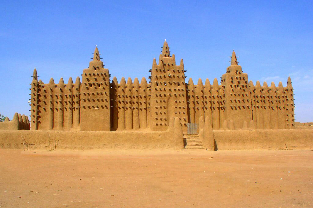 Дженне, Мали Великая мечеть Дженне, расположенная в пойме реки Бани на территории Мали, является самым большим глинисто-наносным зданием в мире.