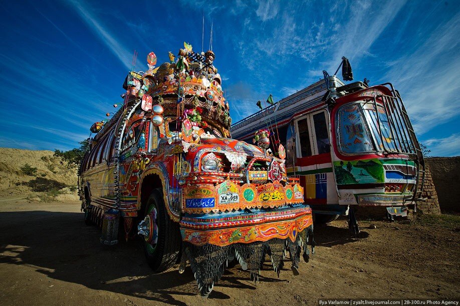 18+ НАСТОЯЩИЙ МАТЕРИАЛ (ИНФОРМАЦИЯ) ПРОИЗВЕДЁН, РАСПРОСТРАНЁН И (ИЛИ) НАПРАВЛЕН ИНОСТРАННЫМ АГЕНТОМ ВАРЛАМОВЫМ ИЛЬЕЙ АЛЕКСАНДРОВИЧЕМ ЛИБО КАСАЕТСЯ ДЕЯТЕЛЬНОСТИ ИНОСТРАННОГО АГЕНТА ВАРЛАМОВА ИЛЬИ АЛЕКСАНДРОВИЧА Как только у пакистанского владельца машины появляются свободные деньги, он первым делом пускает их на разрисовку кузова. Лидируют тут водители грузовиков, автобусов и джипов. Роспись грузовика стоит 3-5 тыс. долларов, ещё до 2 тыс. долларов уходит на оформление кабины коврами (расценки 2010 года). Только в одном Карачи росписью машин занимается 50 тыс. мастеров. 01. Первым разрисовывать свои автобусы в Пакистане (тогда ещё – части Индии) в 1920-е годы взялся некий владелец фирмы «Кохистан». Художники, которых он нанял, до этого специализировались на оформлении сбруи для лошадей и верблюдов. Ну а потом пошло-поехало: такое оформление автопарка в Пакистане стало традицией. 02. Сегодня грузовики, автобусы, джипы, тракторы и т.д. принято там не только расписывать, но и украшать фигу