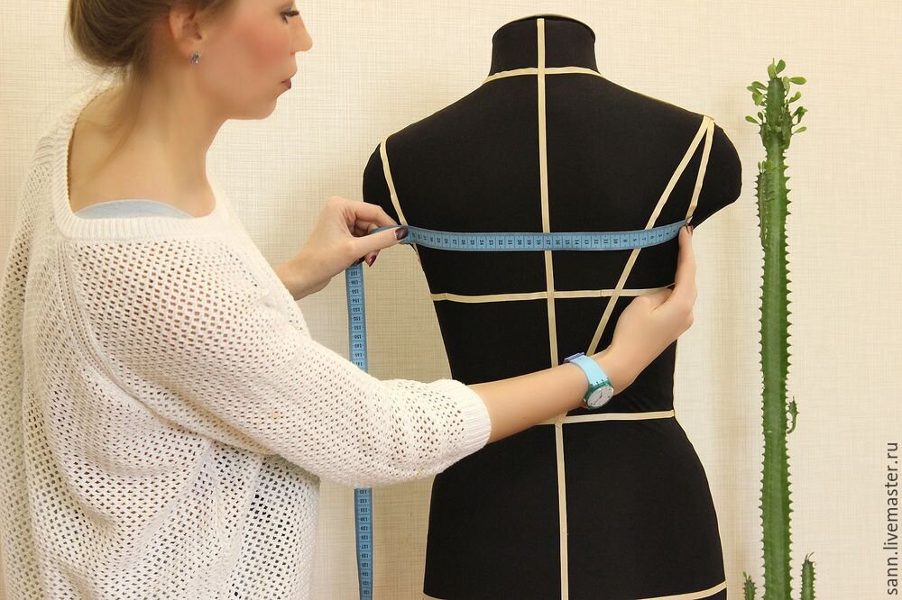 Для того чтобы сделать основную выкройку, надо знать, прежде всего, мерки человека, для которого шьется одежда. Каждая мерка имеет свое обозначение. Все необходимые мерки надо записать. И порядок измерений, и их запись имеют определенную последовательность. Мерки записывают в строчку, строго по порядку, и по их очередности можно узнать, что они обозначают. При снятии мерок стойте прямо, в своей обыкновенной позе: не слишком вытягивайтесь и расправляйте плечи, если вы немного сутулитесь, так как в противном случае одежда не будет хорошо сидеть. Прежде чем приступить к снятию мерок, следует точно установить линию талии на фигуре. Для этого талию в самом узком месте опоясывают поясом или тесьмой. Мерки длины снимают и записывают полностью, а окружностей - в половинном размере. Длину спины до талии измеряют от седьмого шейного позвонка вдоль по спине до линии талии. Ширину спины измеряют на уровне подмышек через выступающие точки лопаток. Общую длину изделия измеряют от седьмого шейног