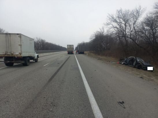 На 217-м километре трассы «Кавказ» за рулем «Лады Приоры» двигался по обочине 29-летний мужчина. Он ехал на высокой скорости и врезался в стоящий из-за технеисправности грузовик ДАФ. Водитель легковушки выехал на проезжую часть, где столкнулся с фурой МАН. «Приору» вынесло на обочину, где она повторно врезалась с грузовик.