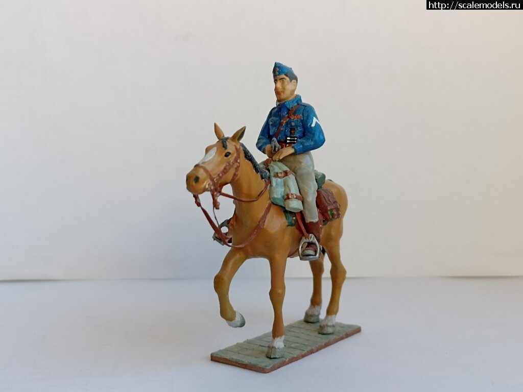Jefe de falange - Falange Espanola, Испания, 1936-39 гг. Всем добрейшего времени суток! Испания, как сказал мой приятель, не отпускает. Как-то возникло у меня желание сделать конника. Кавалериста собираю впервые, но главное - начать. Приобрел я набор AVART arhive AVA 35103 (Советская кавалерия). Сказать честно, в плане кавалерии выбор по вменяемым ценам очень невелик. Из одной конной фигурки данного набора решил сделать что-то на тему Гражданской войны в Испании. Что-то радикально переделывать не стал. Набор понравился - стыкуемость хорошая, отливки тоже, облоя почти нет, пластик хорошо обрабатывается. Хотя набор приятелем был раскритикован, каких-то уж очень сильных косяков я там не увидел. Потом, правда, выяснилось, что не на тот набор критику наводили - он подумал, про МСД, а вот там точно работа не для слабонервных, пилить не перепилить. Прочитать полную статью: http://scalemodels.ru/articles/16719-Jefe-de-falange---Falange-Espanola-ispanija-1936-39-gg-.html