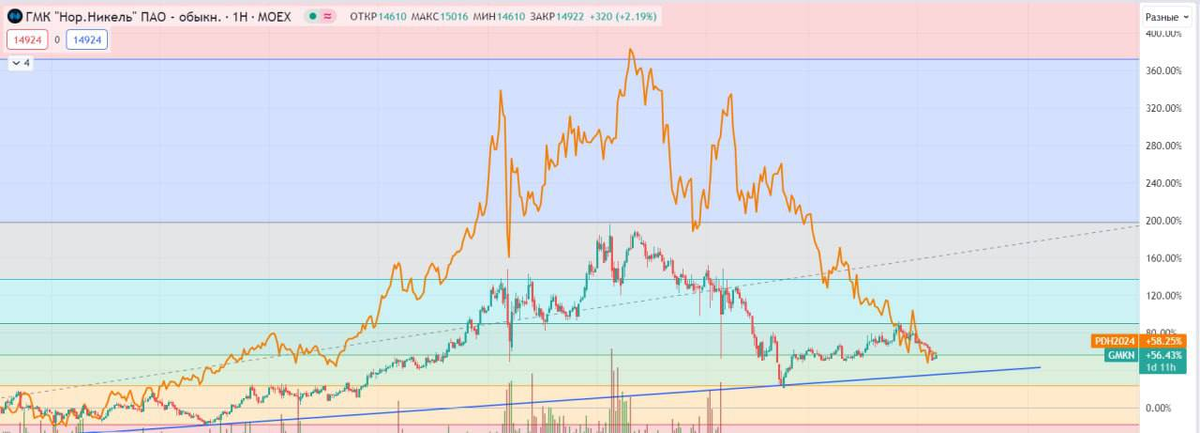 Несмотря на то, что результаты по выручке связаны с падением цен на один из основных металлов - Палладий, динамика Норки и Палладия пришла к паритету, что вероятно, остановит снижение цен на акции 🤷♂️