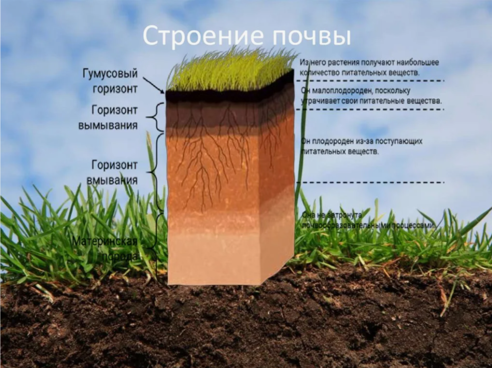 - Наличие микроорганизмов, которые способствуют образованию гумуса и переработке органических веществ.