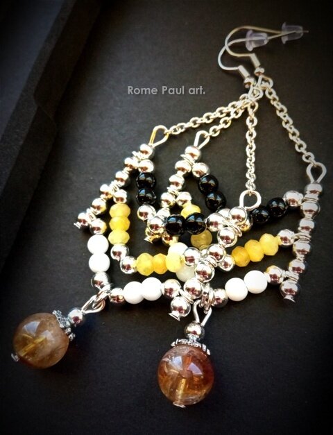 Материалы: натуральный агат (чёрный\жёлтый\белый, 4 мм, Бразилия), природный цитрин (10мм, класс ААА, Испания), посеребрённая фурнитура, цепочка (серебряный сплав)