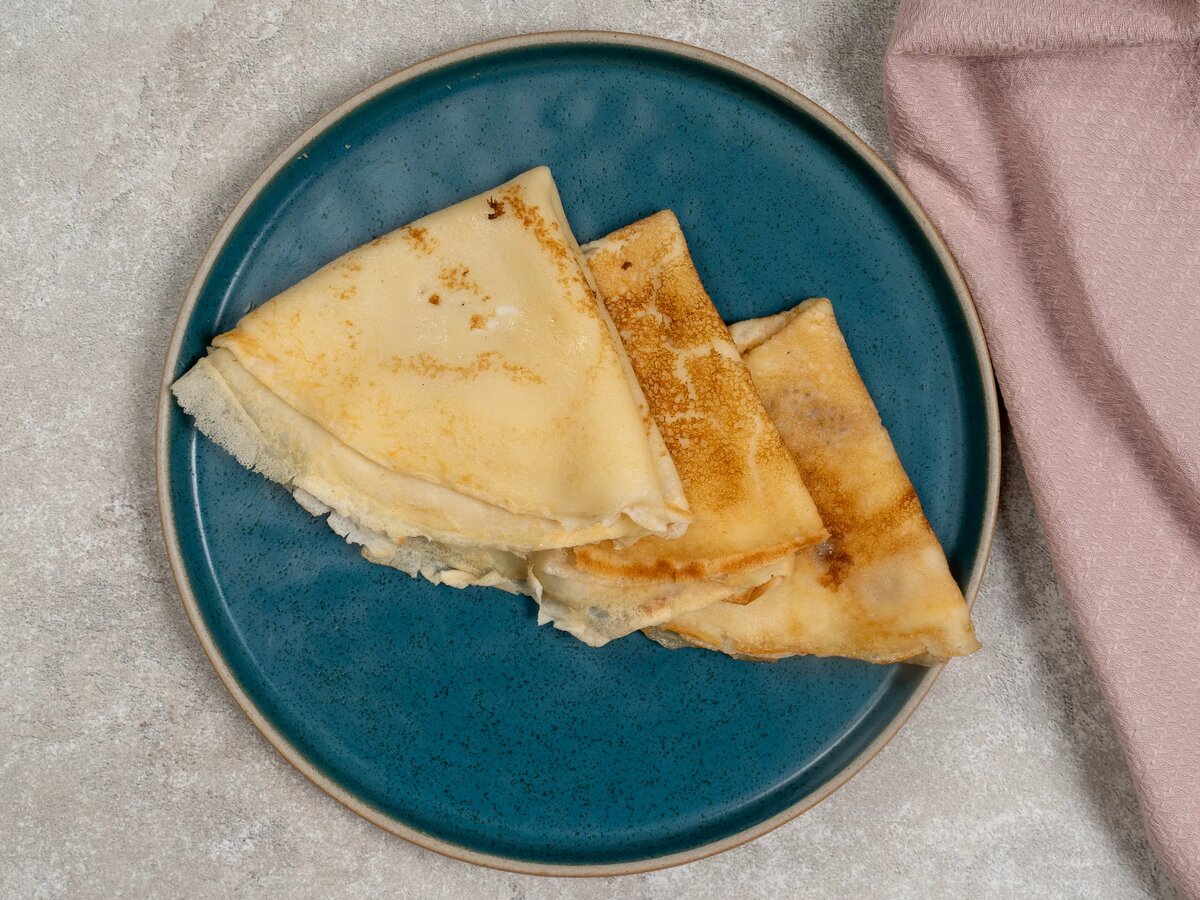 Переложите горячие блины на плоскую тарелку и подайте с любимыми топингами. Приятного аппетита!