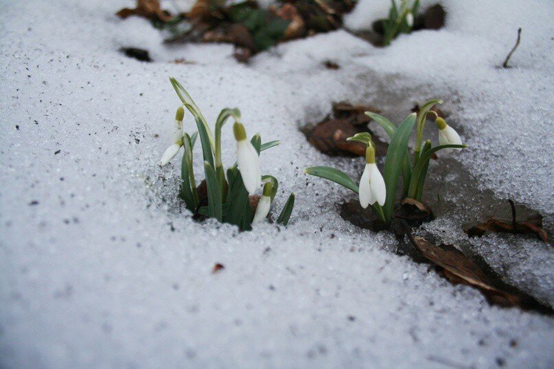 Подснежник побеждает снег.