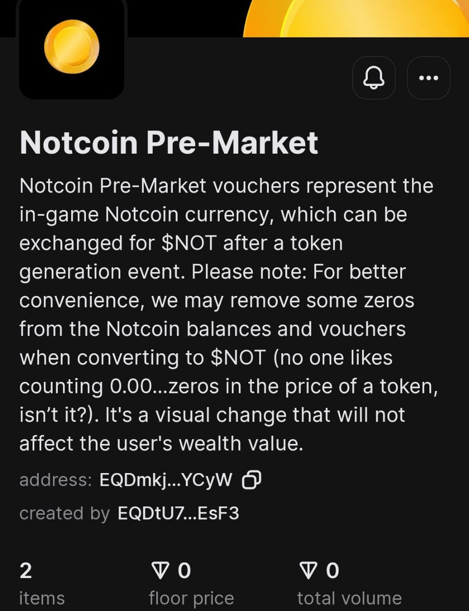Привет всем! Вот-вот многие с нетерпением ждут возможности продать свои Notкоины, заработанные с кровью и потом. Разработчики не просто сидят сложа руки, они уже готовятся выпустить новое обновление - Notкоиновые облигации! Благодаря им вам будет доступна уникальная возможность продать свою валюту в виде NFT на платформе GetGems. Также вот какая информация появилась сегодня "Продажа предпродажных ваучеров Notcoin представляет собой возможность обменять внутриигровую валюту Notcoin на $NOT после запуска токена. Важно отметить: при конвертации в $NOT мы можем убрать лишние нули с балансов Notcoin и ваучеров (ведь никому не нравится бесконечное количество нулей в цене токена, верно?). Это чисто визуальное изменение и не повлияет на общую ценность вашего состояния."