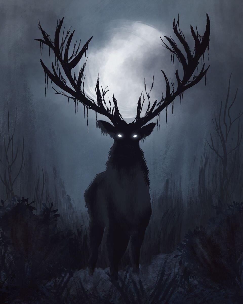 Время шло. Женщина уже не обращала внимания, как вдруг, из тени деревьев показался тот самый Леший, с ветвистыми рогами.