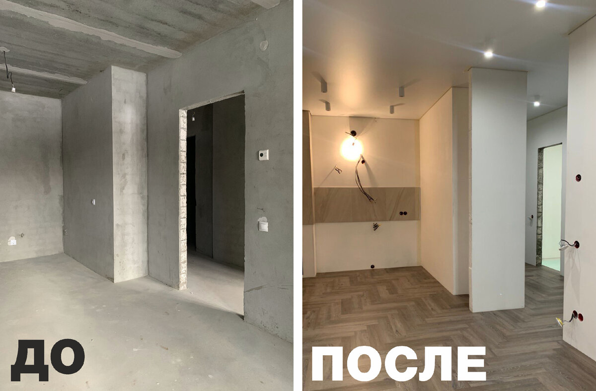 Чтобы начать ремонт квартиры, для начала определитесь с расстановкой мебели в каждом помещении, подберите отделку для стен (краска или обои), пола (ламинат или кварц-винил) и потолка (натяжной и ГКЛ), а также со всеми розетками. Расстановить мебель можно мелом прямо на полах и стенах в квартире.