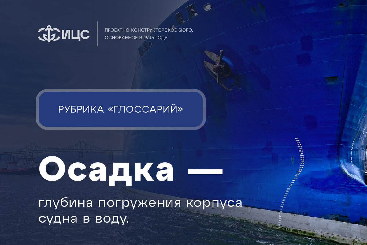 Осадка судна – одно из основных размерений, расстояние от водной поверхности до самой нижней точки днища судна. Этот параметр является одним из ключевых при определении возможностей судна и его устойчивости. Расчёт осадки судна производится на этапе проектирования и зависит от ряда показателей (общая масса судна, водоизмещение, длина киля, формы обводов корпуса и т.д.). Осадка судна измеряется в метрах или футах (в зависимости от системы измерения в конкретном регионе) и может изменяться в зависимости от величины груза на борту. Безопасность плавания зависит от величины осадки судна: чем больше осадка, тем более устойчиво судно. Однако слишком большая осадка может привести к тому, что судну не удастся пройти через мелководье или причалить к берегу. В то же время, при слишком маленькой осадке судно может потерять остойчивость и опрокинется. Также грамотное определение осадки судна на этапе проектирования влияет на экономическую составляющую: например уменьшение осадки грузового 200 00