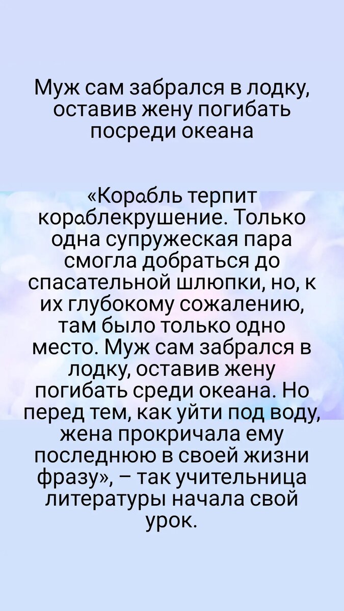 Муж сам забрался в лодку, оставив жену погибать посреди океана