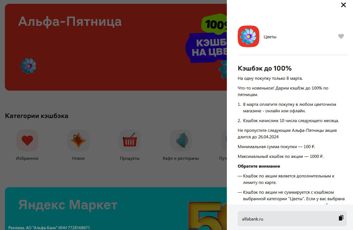 Альфа-Пятница 8 марта: оказалось, что банк дает 1000 рублей на цветы своим клиентам