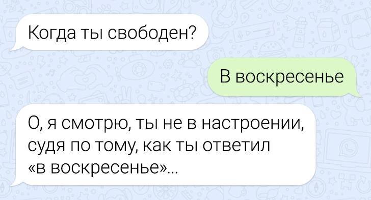 У каждого из нас были увлекательные телефонные разговоры, что они до сих пор живут в наших воспоминаниях. Но не меньше ярких моментов могут происходить и в переписке. Грамматические ошибки, игра слов и неожиданные реакции получателя лишь придают дополнительный колорит и веселость таким историям, давайте посмотрим на несколько таких диалогов, которые если даже вас не рассмешат, то по крайней заставят улыбнуться!